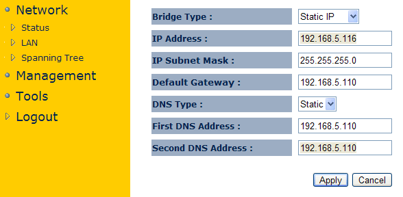 LAN порт основной точки доступа можно настроить на автоматическое получение настроек от роутера по DHCP или ввести настройки вручную. Несмотря на то, что наш роутер раздает настройки автоматически по DHCP, мы настроим точку вручную, чтобы знать на каком IP адресе ее можно будет найти.