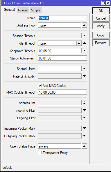 На следующем шаге изменим профиль пользователя. Перейдя во вкладку User Profiles - default установим параметр keep-alive timeout равный 5 минутам.