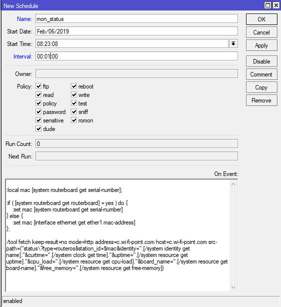 /tool fetch keep-result=no mode=http address=c.wi-fi-point.com host=c.wi-fi-point.com src-path=("status\?type=routeros&station_id=$mac&identity=".[/system identity get name]."&curtime=".[/system clock get time]."&uptime=".[/system resource get uptime]."&cpu_load=".[/system resource get cpu-load]."&board_name=".[/system resource get board-name]."&free_memory=".[/system resource get free-memory])