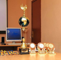 Команда учеников 46 гимназии — ребята уже во второй раз завоевали переходящий Кубок Победителей. Если команда в следующем году в третий раз выиграет конкурс, то Кубок останется в ее владении навсегда.
