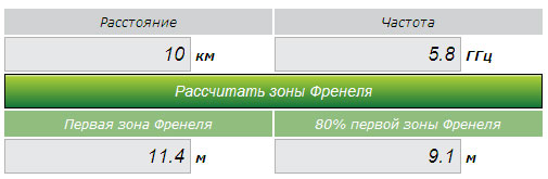 Рассчитать зону Френеля и высоту установки поможет любой калькулятор зоны Френеля. Рассчитайте высоту установки не менее 80% зоны Френеля.